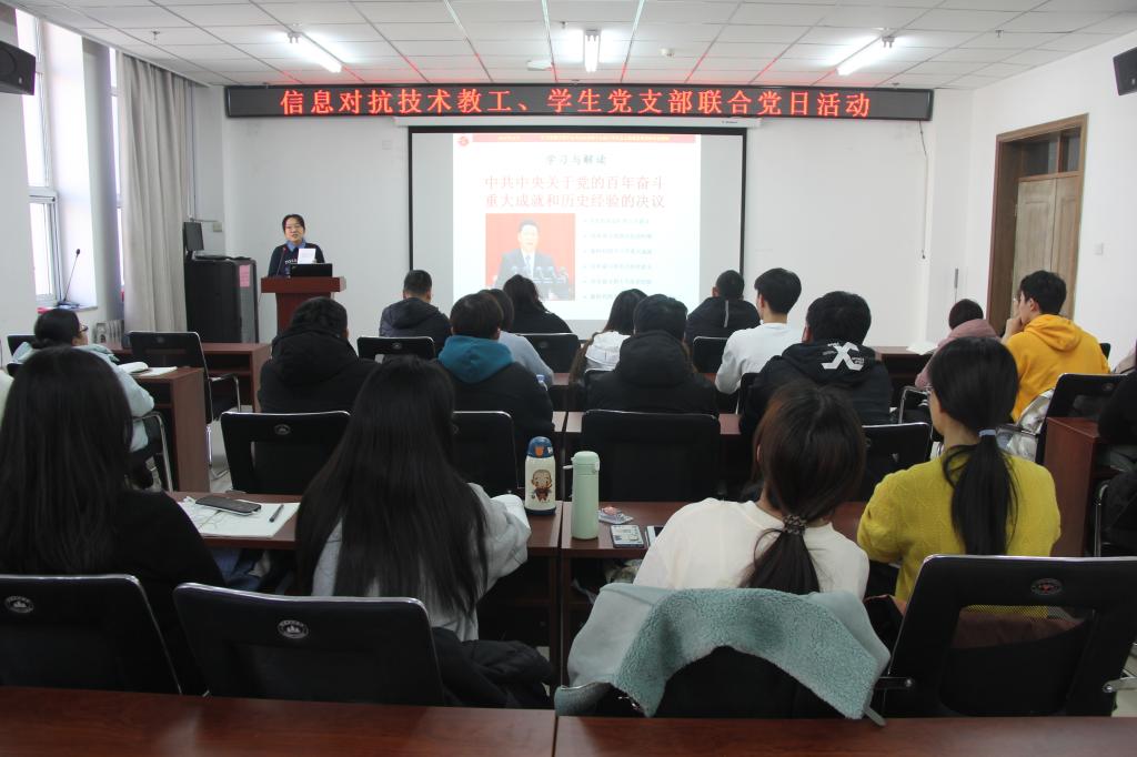 2021年12月1日下午3时,按照学院关于中国共产党十九届六中全会精神学习安排,结合信息对抗技术专业实际,信息对抗技术教工党支部和学生党支部在学院715会议室开展了联合党日活动。