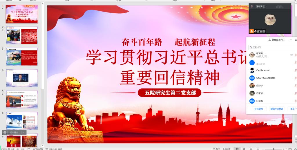 2022年4月7日下午4:30研究生第二党支部以线上的形式在腾讯会议开展了以《学习贯彻习近平总书记重要回信的精神》为主题的活动。