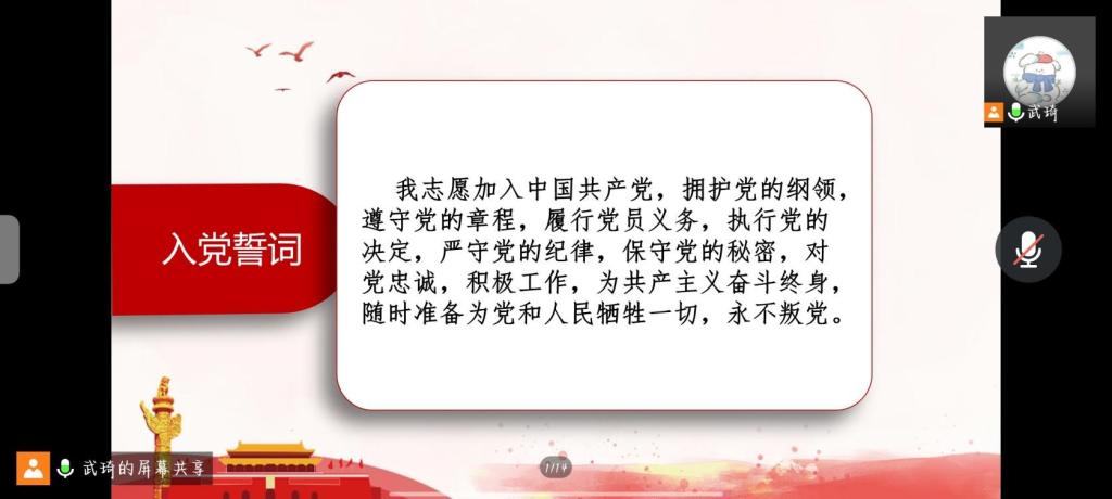 会议伊始,参会同志们重温入党誓词,当入党誓词再一次出现在眼前时,每一位同志都想起来自己入党的初心,更加坚定了自己的责任与信念,纷纷表示在今后的学习和生活中应发挥敢为人先、矢志为公的精神。会议第二部分,参会同志一起观看了《榜样的力量:吕梁精神》和《雪国的篝火》等视频,通过观看视频大家深深感受到了老一辈革命家甘于奉献、舍己为人的无私精神,也体会到了在革命征程上的艰难险阻和重重困难。