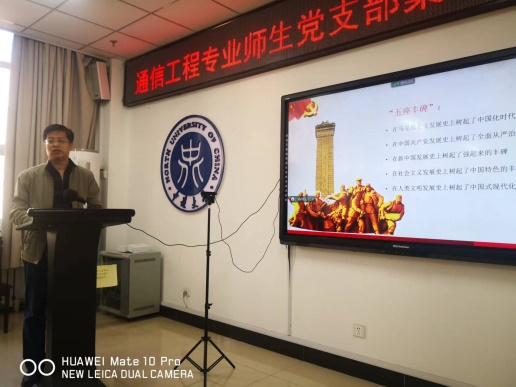 院长杨风暴教授为通信工程专业师生党员做了题为“学习宣传贯彻党的二十大精神 踔厉奋发·勇毅前行·团结奋斗”的专题党课。师生党员采取线下、线上相结合的方式进行收听学习。