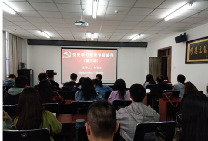 党委在科学楼715会议室举办了第三场党史学习教育专题辅导讲座。通信工程专业全体党员一起聆听了由中央党校(国家行政学院)党的建设教研部副主任刘宝东教授主讲的“党夺取全国政权的历史经验”视频讲座。讲座由学生党支部书记陈淑霞老师主持。
