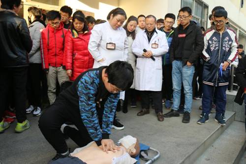 烟雾弹模拟火情发生,住在5楼的学生大声呼救,警报声响起,整个演练正式开始。演习过程中,同学们用湿毛巾捂住口鼻,低身有秩序进行撤离。在大家的通力配合下,所有参与演练的师生在规定时间内在指定地点集合,顺利完成本次演练。随后校医院田主任为师生们现场讲解了心肺复苏等紧急救护知识,并让同学们现场进行学习施救;最后校保卫处向远峰老师为大家讲解了有关灭火器的使用方法及注意事项并让大家实际操作。整个演练过程井然有序,充分展示了五院师生对学生安全工作的高度重视,参与演练的同学均表示收获颇深。通过本次的逃生自救及灭火技能演练,增强了同学们的消防安全意识,对消防疏散的要领、急救知识、灭火器的使用等相关知识有了更深刻的记忆和理解。