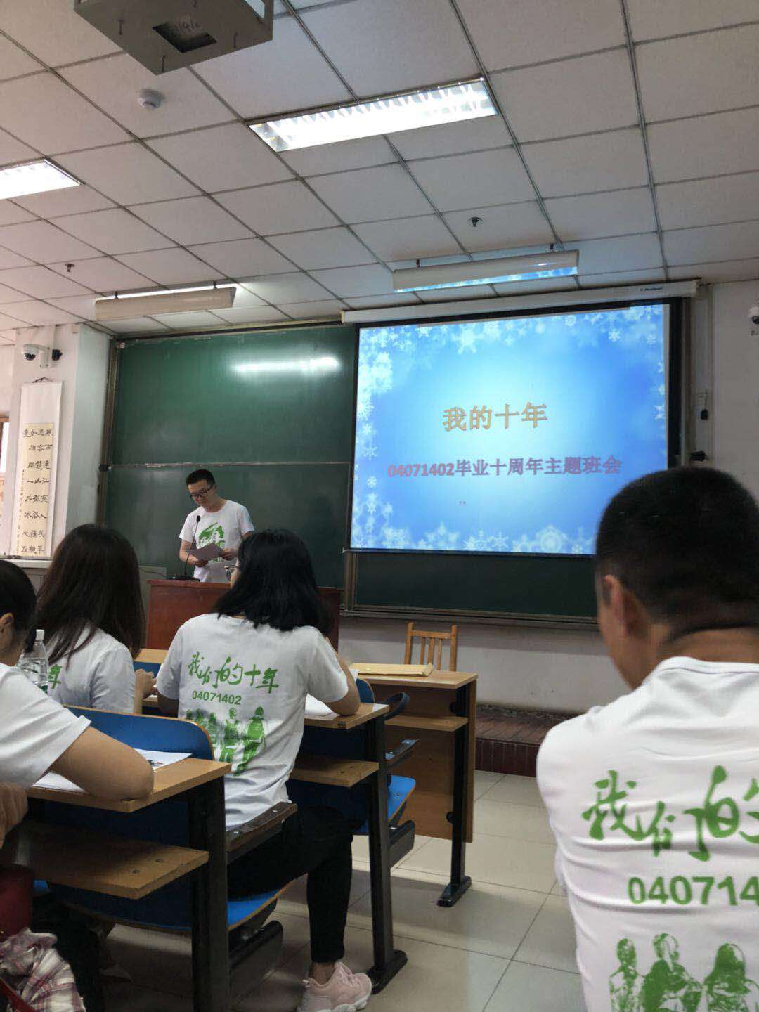 下午在主楼教室举办了“我的十年”04071402班主题班会,原计划两小时的班会时间最终进行了近五个小时,首先观看了同学精心准备的十年前毕业聚会的视频,大家看到了自己曾经稚嫩的脸庞和纯真的情谊,此时对同学、老师和学校的思念已经不必隐藏,同学们不禁潸然泪下,之后大家讲述了 “我的十年”,介绍了自己在十年中的心路历程,虽然各自的人生经历大不相同,但所有人都感谢自己在第一会所 所受的教育与熏陶、感谢自己人生最青春的时光有各位老师和同学的陪伴。班主任魏媛媛老师向大家介绍了学校和学院近十年的变化和发展,希望同学们要倍加珍惜同窗情和师生情,并在今后的学习、工作和生活中要互通信息,互相帮助,享受成功,还希望大家有空常回家看看,看一看故土校园,访一访老师同学,叙一叙旧日情谊,母校会始终关心关注每位同学的成长和成功。晚上在汾河旁边举办了聚会晚宴,学校招生就业处的刘宝华副处长和班主任魏媛媛老师与大家把酒言欢,共叙情谊。